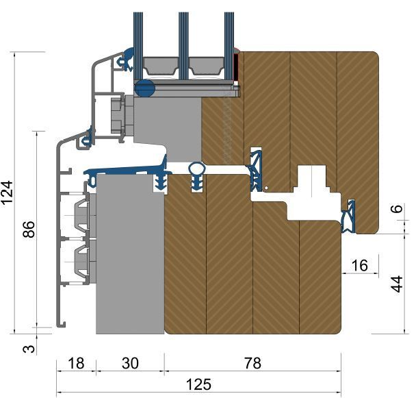 Zwischen Aluschale und Holzfenster befindet sich ein Polysterol-Schaum der gemeinsam mit der verbreiterten Hauptdichtung, der mittleren Dichtung, der Polietylen-Schnur und vor allem dem Glaspaket dafür sorgt, daß dieses Fenster einen Uw Wert ab 0,64 W(m2K) erreicht.