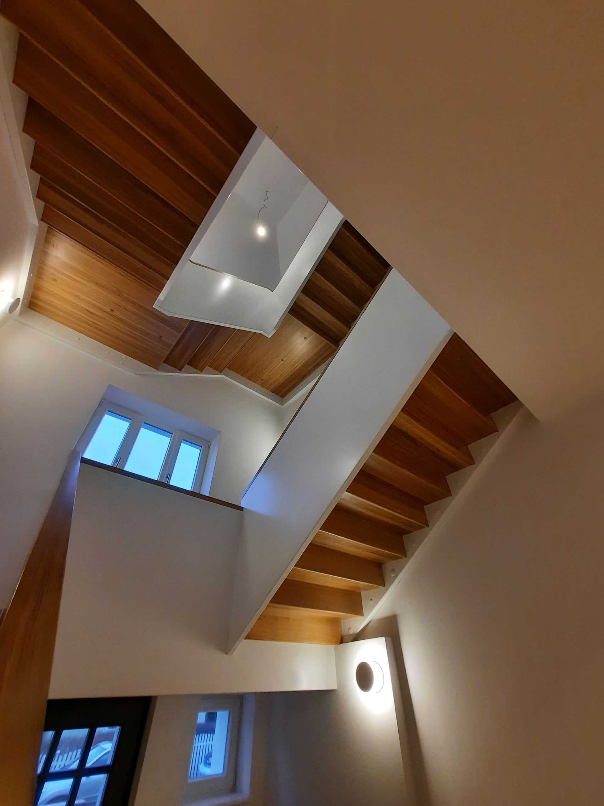 Mehrläufige Treppen sind Treppen mit mindestens einem Zwischenpodest. Sie können entweder komplett gerade sein oder in unterschiedlichen Formen als L-, U-, T-, S- oder E-Treppe. Auch gewendelte Treppe oder Wendeltreppen können mehrläufig sein.